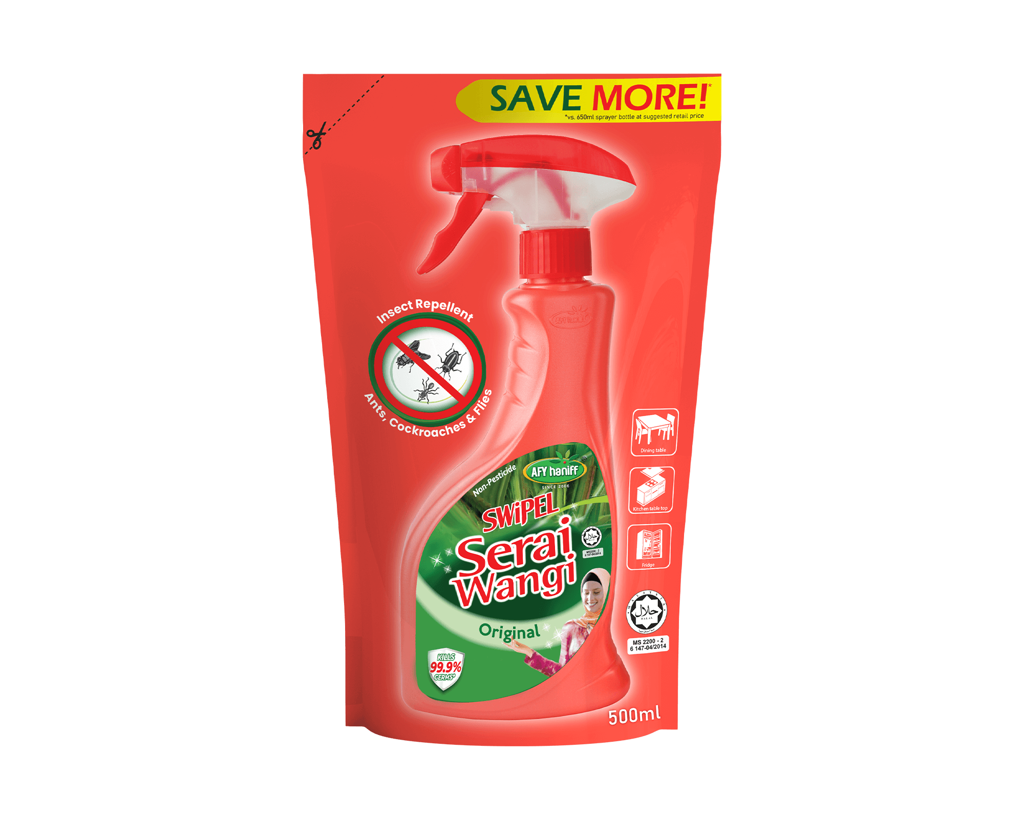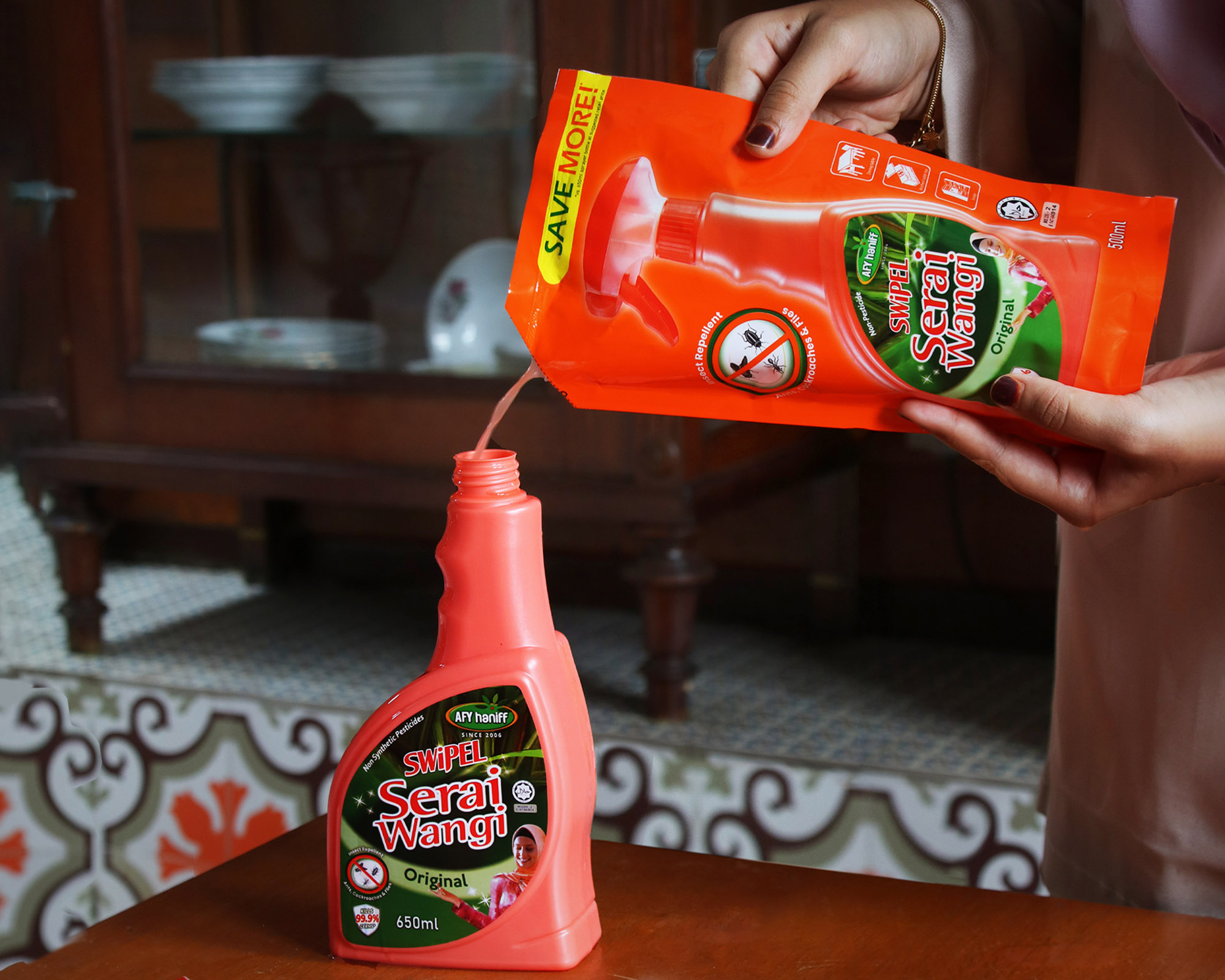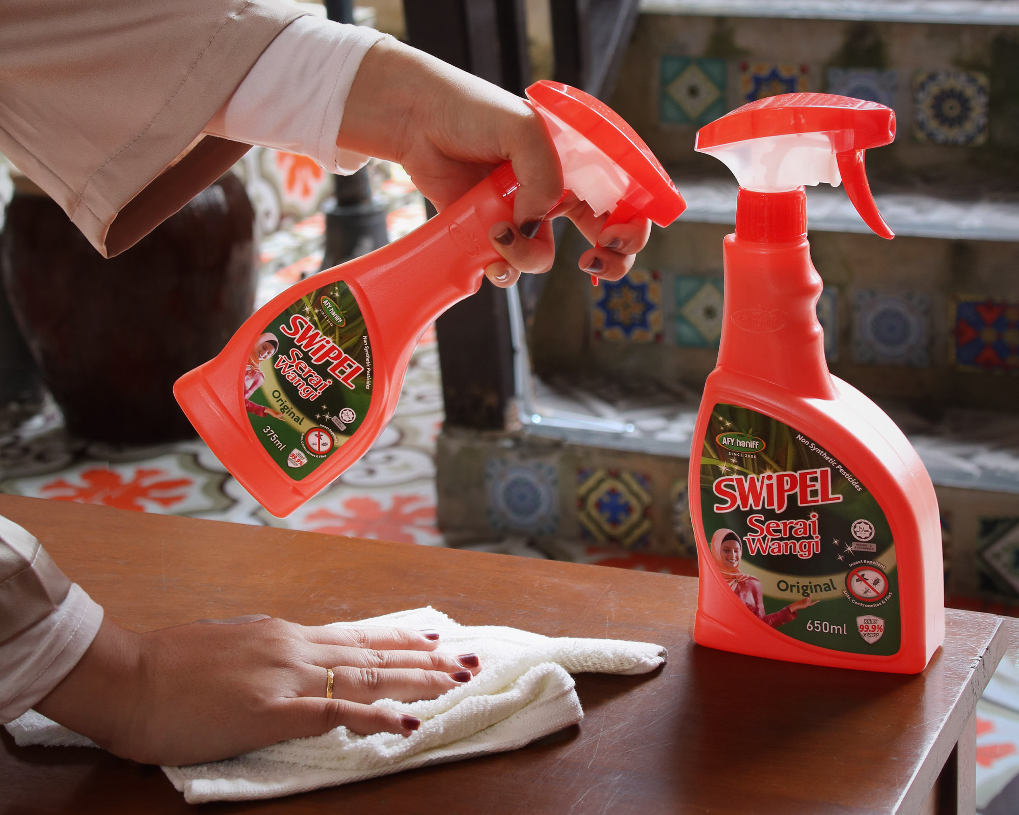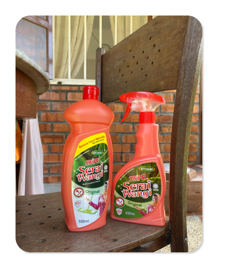 Our SWiPEL Serai Wangi brand provides home cleaning and pest repellent products for various space usage such as homes, offices, hotels, restaurants and more. SWiPEL Serai Wangi products are derived from natural plant based ingredients, therefore are not toxic for people, pets and plants, furthermore are septic safe. SWiPEL Serai Wangi products have very strong aromatic smell and are very effective in removing grease, plus repel pests and insects.